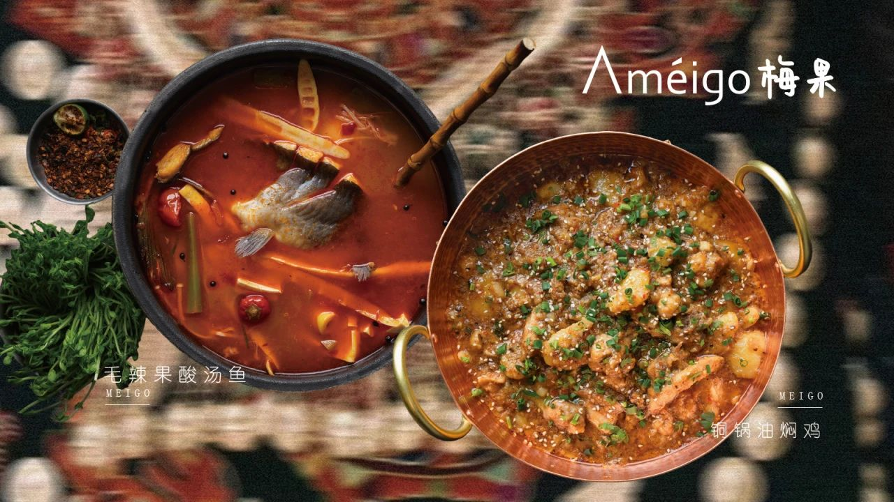 「Ameigo梅果」以云貴川傳統菜系為基礎,創新將中華地域特色食材與西式烹飪技法融合。呈現更多美味與創意的可能。每一道菜品都是對傳統與現代的精妙平衡,顧客不僅可以在此品嘗到食物的原汁原味,還能體驗到前所未有的味覺驚喜。