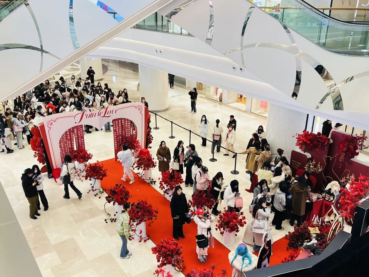 本次活動是武商MALL與乙游IP的再度攜手,相較首次合作,此番在展點策劃、互動形式和宣傳范圍等方面均進行了優化升級。多點位投放電子屏,特別是C座瀑布屏、冰場環形屏的曝光,極大滿足粉絲打卡分享欲。多樓層設置打卡點,通過集章方式將客流引至全館,每個打卡點根據故事場景進行轉換,精美陳列帶來沉浸浪漫氛圍,更是與乙游角色“秦徹”的深度綁定,形成強代入感。同時,打卡點位的分散設置,不僅緩解了粉絲長時間排隊,增加活動參與率,還聯動樓層品牌開展會員納新,增加曝光度?;顒訖n期相關話題瀏覽量增長近10萬,在社交平臺引發熱烈討論。