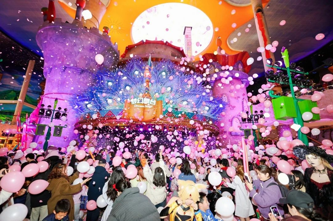 此次活動還特別設計了夢幻的“氣球櫻花雨”。在特定時段,數萬只粉色氣球與櫻花花瓣從天而降,將戲劇場景延伸至整個樂園,為觀眾營造如夢似幻的觀演氛圍。這一浪漫瞬間不僅成為顧客爭相打卡的網紅場景,更與戲劇演出交相輝映,共同編織出獨特的春日記憶。