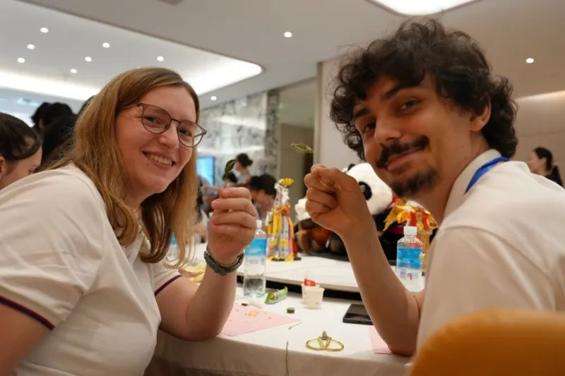 武漢紡織大學非遺研究中心的專家擔任導師,從“纏花介紹”“歷史淵源”“應用范圍”,到“制作工藝”的核心技藝,再到“體驗課制作過程”的具體步驟,逐一講解,在導師和助教們手把手的指導下,這群充滿好奇心的“國際學徒”們拿起絲線,開始了一場與歷史的對話。纏繞、捻轉、定型,指尖翻飛間,“非遺”不再是書本上的詞匯,而是可觸摸、可創造的鮮活體驗。一件件親手制作的纏花,成為連接過去與現在、東方與世界的獨特信物。